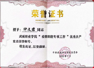 经个人申报、学院推荐、学校审核,我院仲文君同志荣获“疫情防控专项工作”优秀共产党员荣誉称号,李玉荣同志荣获“双高计划建设项目专项工作”优秀共产党员荣誉称号,申宾德同志荣获“申办本科层次职业学校专项工作”优秀共产党员荣誉称号。