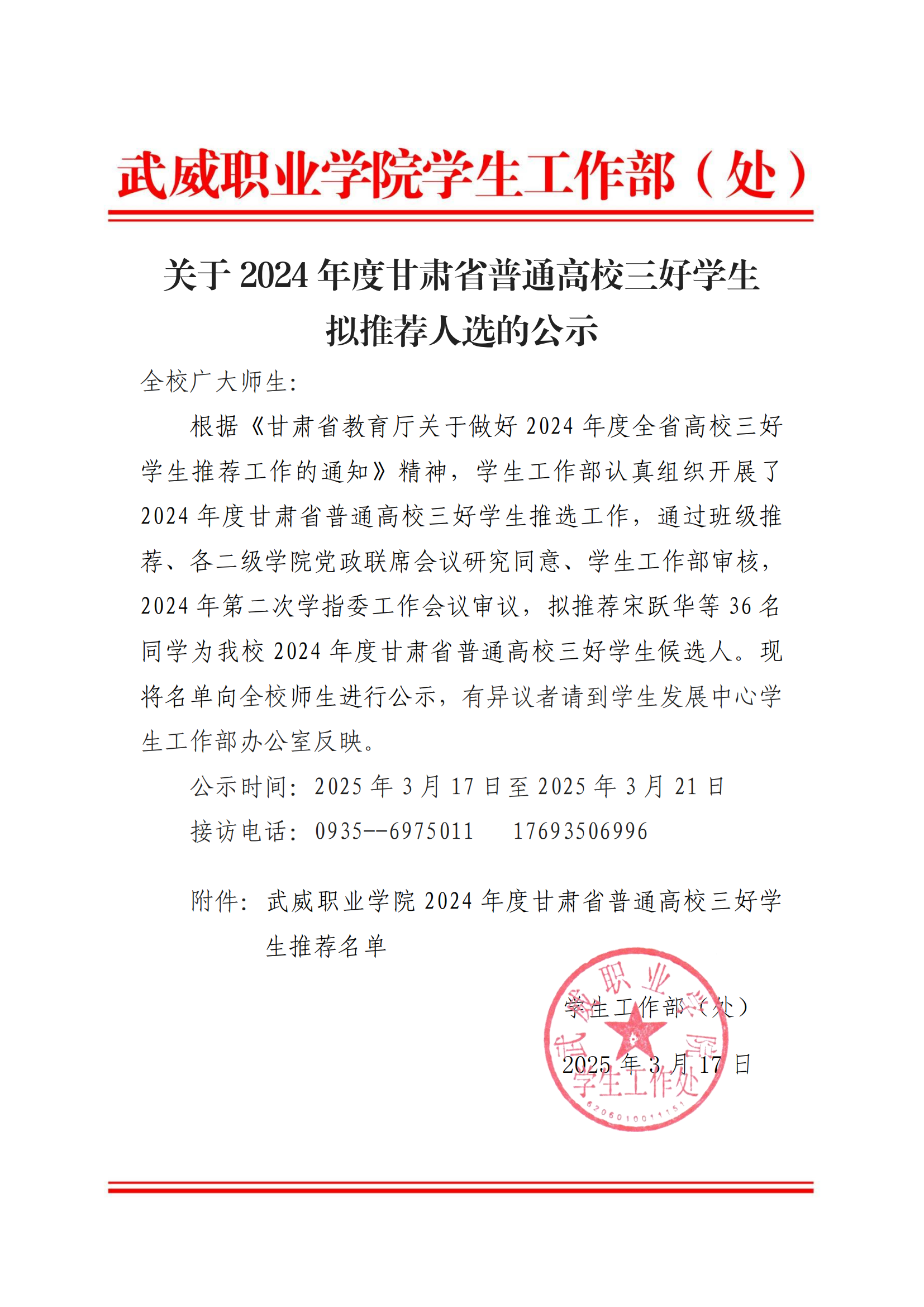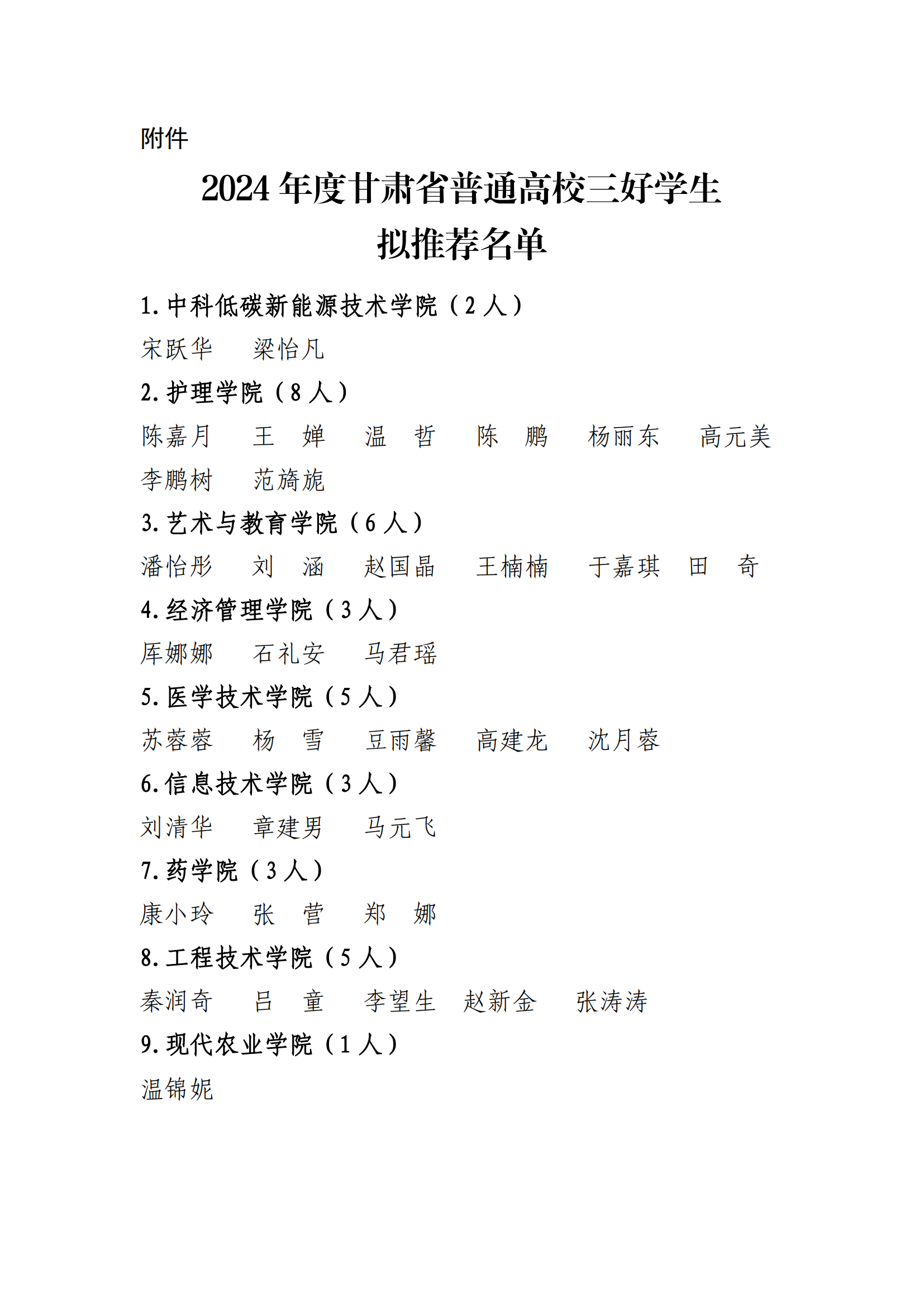 关于2024年度甘肃省普通高校三好学生拟推荐人选的公示