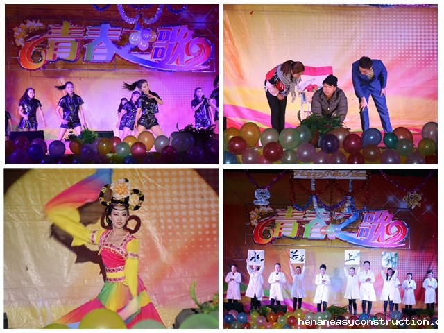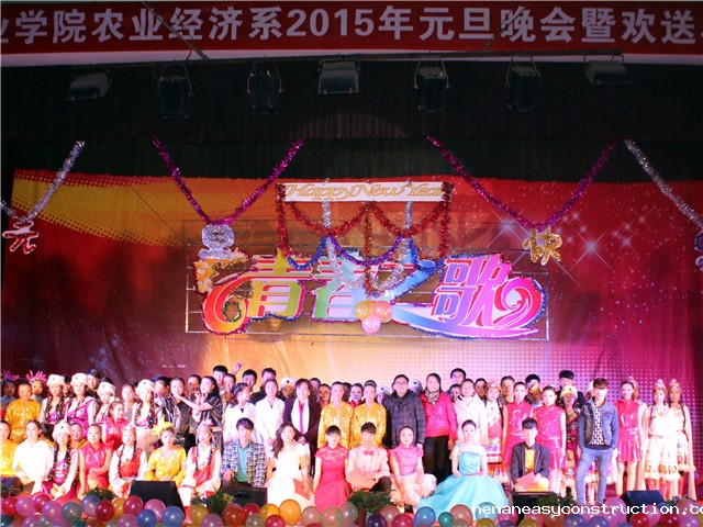 本次晚会以“青春之歌,欢送毕业生”为主题,共表演了17个精彩节目。晚上7点整,开场舞《倍儿爽》、《小苹果》为整台晚会拉开了帷幕。在晚会上,《格桑拉》、《吉祥谣》及《青春踢踏》等少数民族舞蹈,体现了五十六个民族大团结,互相共融的感情;《感恩的心》表达了学生们对老师一年来孜孜不倦、淳淳教诲的感恩之情;《天下父母心》表达了对父母的养育之恩的感谢;舞蹈《惊鸿舞》和《The boys》等给观众带来了别样的风情,展现出青年学子活力青春;大型舞蹈《致那些年逝去的青春》和《梦回敦煌》带给观众视觉盛宴;舞蹈《串烧》结合了几首近几年流行的脍炙人口的歌曲,将不同舞蹈串烧一起。青春现代舞《Expect》将整个晚会推向高潮。