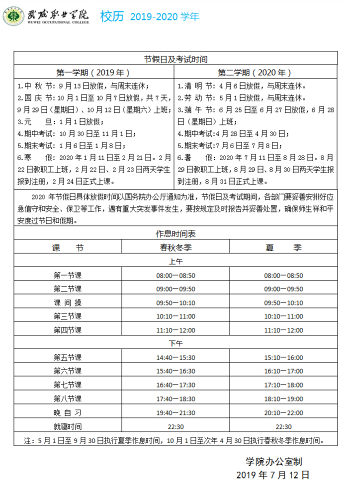 2019-2020学年校历